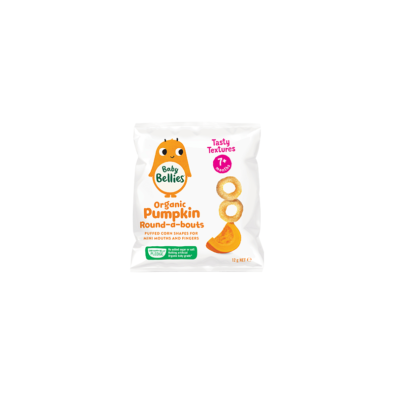 Deliciously crispy organic corn rings with pumpkin that melt in the mouth for safe self-feeding. Ideal for first stage snacking.